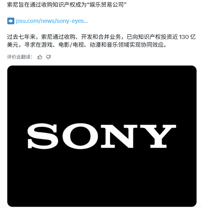 报道指出,过去七年间,索尼在娱乐IP上的投入累计已达1.9万亿日元(约128亿美元),这些IP正被整合进其游戏、影视、动画等多个业务板块中,形成协同效应,全面提升内容价值。