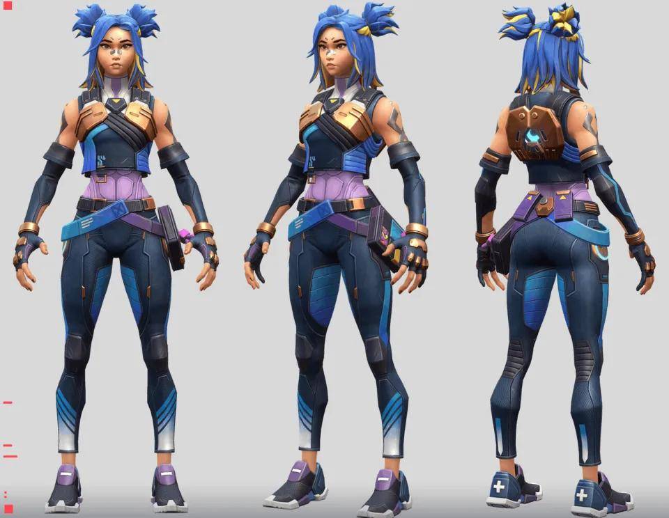 在英雄设计方面,“瓦手”同样遵循“为玩法服务”的理念。每个角色有且只有一两种主题色,人物的服装、技能、饰品等元素都会紧密围绕主题色设计。例如,霓虹的主题色是深蓝,斯凯是草绿,奇乐则是黄色和绿色混搭。这种设计不仅强化了角色形象,还增加了对局的便利性,玩家可以通过分辨颜色这种简单有效的方式区分不同的英雄,从而剔除对局中不必要的干扰。