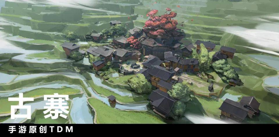“古寨”是“瓦手”首个原创国风地图,其设计灵感来源于分布于贵州、云南等地的千年古寨——苗寨。玩家可以在地图中看到竹林、吊脚楼等许多熟悉的国风元素。