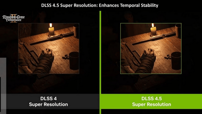 根据测试,新版DLSS在图像稳定性和伪影消除方面取得明显进步。在《天国:拯救2》和《上古卷轴4重制版》中,画面重影和抖动问题明显减弱,视觉效果更加细腻。