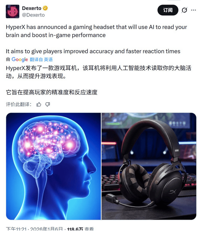 Neurable 长期专注于 脑机接口(BCI) 与 AI 神经信号分析领域,其技术核心在于无需植入设备即可捕捉和解析脑电信号。HyperX 表示,此次合作旨在探索神经技术在电竞与游戏场景中的实际应用潜力。