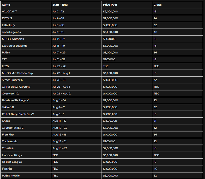 电竞世界杯基金会 CEO 拉尔夫·赖歇特在官方声明中表示,设立如此高额的奖金池,目的是回馈长期为电竞事业投入心血的选手与俱乐部。他强调:“EWC 的独特之处在于俱乐部冠军赛——不仅诞生单项冠军,更将评选跨项目的终极俱乐部王者。”